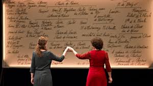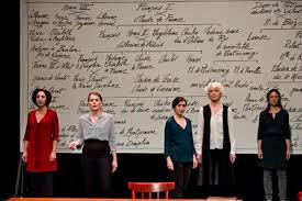 Autant de figures historiques bien lointaines. Voilà de quoi se perdre, avant même que la trame narrative du roman n’entre en jeu. On conviendra que la distribution et le présentification des ces figures historiques et de fiction sera délicate : pas d’autre solution pour les cinq comédiennes que de se partager, d’une façon ou d’une autre, les propos et les actions des personnages.