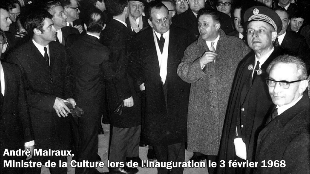 À La gauche du ministre, Malraux, le président de l'association pour la maison de la culture, Philibert