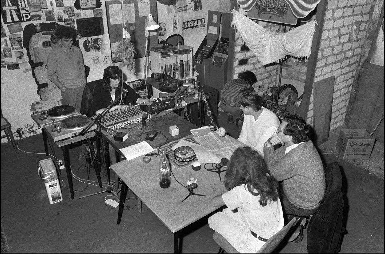 Le studio de production où cohabitent et se confrontent deux petites communautés d’acteurs de production et de diffusion des radios, Radio Quoi et Radio Vox, qui naissent avec la fin du monopole de l’État, n’est pas seulement une chambre d’écho. Il est le lieu d’un champ magnétique de forces qui se croisent, se complètent et se contredisent. Si les fréquences sont partagées par ces deux radios, leurs références culturelles sont loin d’être en résonance.