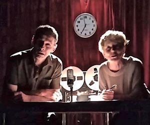 Les narrateurs-personnages évoluent devant un magnétophone comme s’ils enregistraient leur prestation pour un auditoire lointain. Les bobineaux du magnétophone qui tournent durant toute la lecture, en même temps qu’ils diffusent, par instant, le bruit du roulement du train donnent à voir, par métaphore, les roues qui conduisent les occupants entassés dans des wagons de marchandise vers la mort.