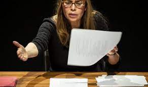 Le conte de Grumberg, alors se fait représentation en raison de ces changements d’énonciation. Ces derniers se déroulent dans un espace scénique minimaliste qui apporte efficacité de la parole et image poétique.
